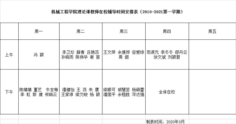 • 2020-2021第一学期理论教师在校辅导时间安排表