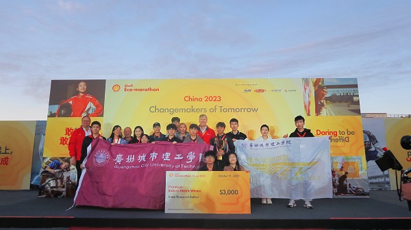 本网讯(记者 温嘉怡)10月19日,2023年壳牌汽车环保马拉松赛(中国)(Shell Eco-marathon China)在北京金港赛道落下帷幕。来自我校、同济大学、吉林大学、北京理工大学、北京交通大学等大学的16支车队,以原型车和城市概念车两种车辆类型,分别挑战内燃机、纯电动和氢燃料电池等三种动力来源的极限效率。我校机械工程学院/机器人工程学院副院长邓达强与机器人工程教研室教师吕艳蕊作为指导老师带领华汽电动车队参赛。经过精彩的角逐,华汽电动车队最终荣获纯电动组别冠军!