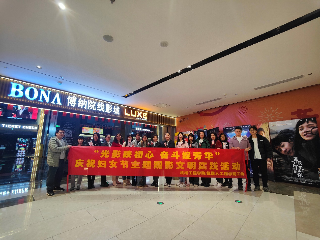 本网讯(记者 谢丽)为弘扬社会正气,彰显法治力量,恰逢妇女节来临,机械工程学院/机器人工程学院为促进女教师的文化生活,增加大家的交流互动,3月5日下午,学院工会组织女老师们集体参加观影活动,学院书记任春雯出席本次活动。