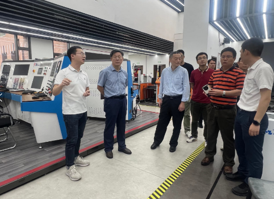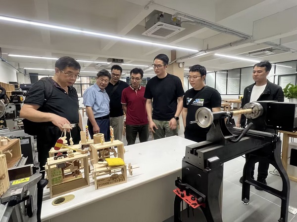 学院教师重点参观了智能制造微工厂(包括工业机器人、柔性加工、系统集成、自动化、智能仓库和数字孪生等模块)、先进制造创新平台(包括数控加工、五轴加工和3D打印等模块)、AI赋能创新平台(包括智能机器人、机器学习、机器视觉、网联汽车、虚拟现实和无人机等模块)、基础实训平台、新能源电池产线创新室、智慧交通创新室、木工创意工作坊等。这些微工厂和创新平台可让学生全面深入了解智能制造产线各平台的组成、功能特点、先进技术,还有机会深入学习工业机器人系统编程和调试,机器人示教、故障诊断和联调等。