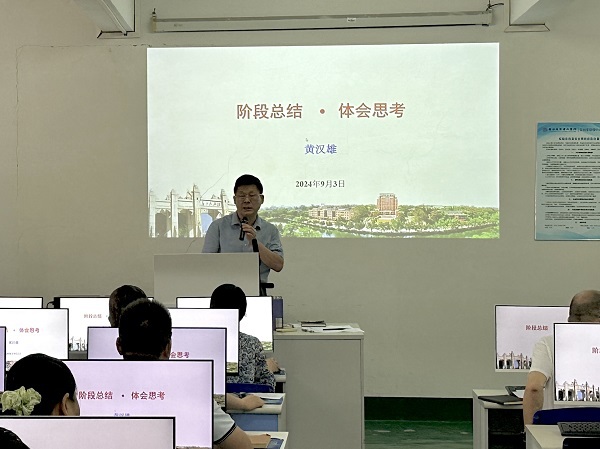 会上,黄汉雄对上学期的工作进行阶段性的总结,展示对教学合格评估工作的体会和思考,分别从院校、教育、人才等不同方面突出了应用型本科的特色,表示应用型人才培养可以学用结合、学用合一、学以致用、以用致学,着重提到其核心是“用”,本质是学以致用,“用”的基础是掌握知识和能力,“用”的目的是满足社会需求,推动社会进步。接着用“五个新理念”与“4321核心内容”让老师们研读并吃透合格评估的新理念与核心内容,向大家介绍评估考察路线与五条考察主线,再次重申了合格评估的重要性,强调中层干部与全体教师的责任与担当。