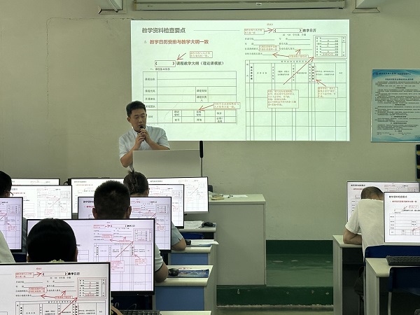 潘健怡指出教学资料检查要点(朱奥雪 摄)