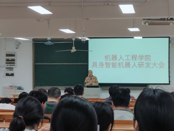 本网讯(记者 刘聪)3月4日晚,机械工程学院/机器人工程学院在A5-101召开具身智能机器人研发项目动员大会。学院副院长邓达强主持会议并作动员报告。学院师生齐聚一堂,共同吹响具身智能机器人研发的冲锋号角。