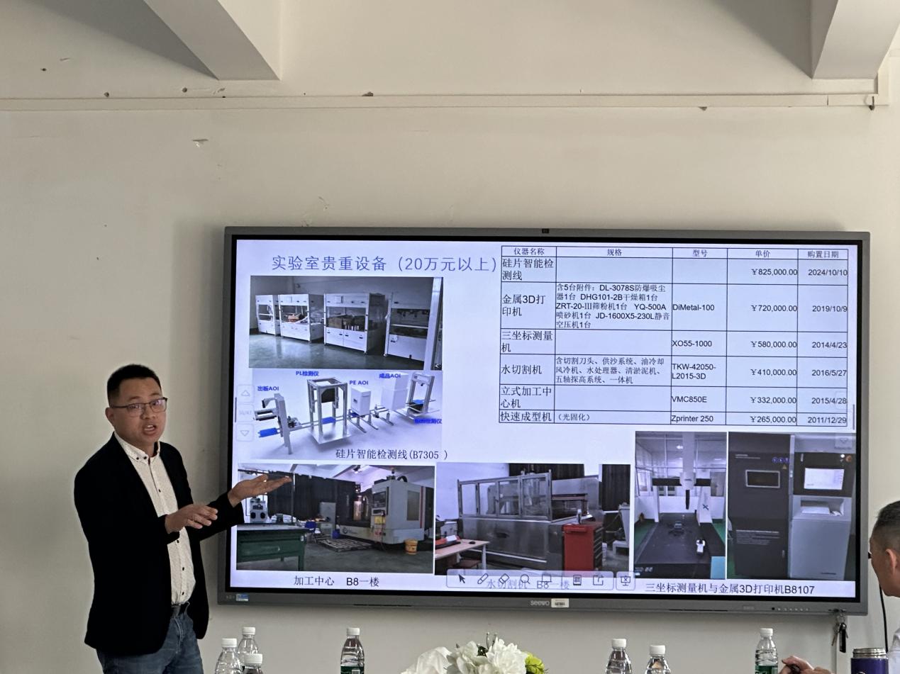 在潘副院长学术引领基础上,工程训练中心主任韩伟、机械电子教研室主任郭建形成发言接力。韩伟围绕依托工程训练中心设备申报科研项目的实践路径展开,结合其与团队教师已完成的项目案例,系统解析设备资源与科研项目的协同模式,为项目申报提供方法论参考。郭建系统梳理硅片智能控制线等设备的技术参数与应用场景,并深度解析设备功能模块的二次开发路径,指导教学科研团队基于现有设备开展技术革新与工艺迭代。