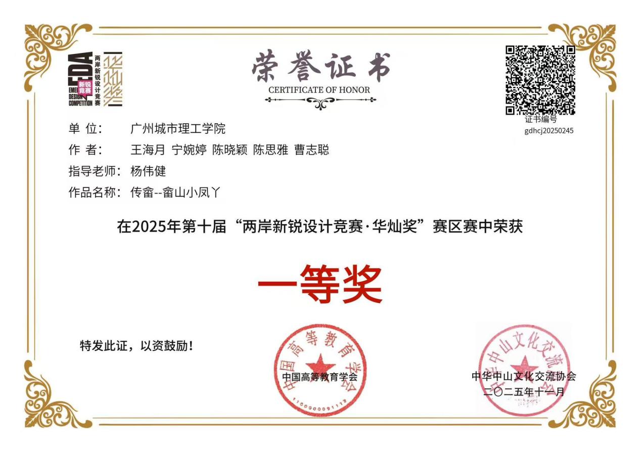 本网讯(记者 王海月)11月24日,由中国高等教育学会、中华中山文化交流协会主办的第十届两岸新锐设计竞赛·华灿奖(以下简称华灿奖)自2025年7月启动以来,经过5个月的作品征集,有48万余学生的12万余件作品参赛。经过校赛、赛区赛、总赛网络评审和现场评审,我校机械工程学院/机器人工程学院工业设计专业学子在该项国家级高水平赛事中再创佳绩,斩获广东赛区一等奖、三等奖各1项,充分展现了我校在创新设计人才培养领域的卓越实力。