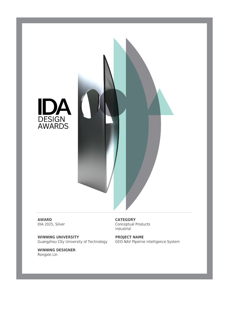 该设计通过AI智能诊断、全光谱视觉模块及模块化工具库,构建了“诊断-决策-执行”的科学作业闭环,极大地提升了管道运维的效率与安全性。IDA评审团对该作品在“设计愿景清晰度”、“设计质量”以及“对当代设计发展的贡献”方面给予了高度评价。