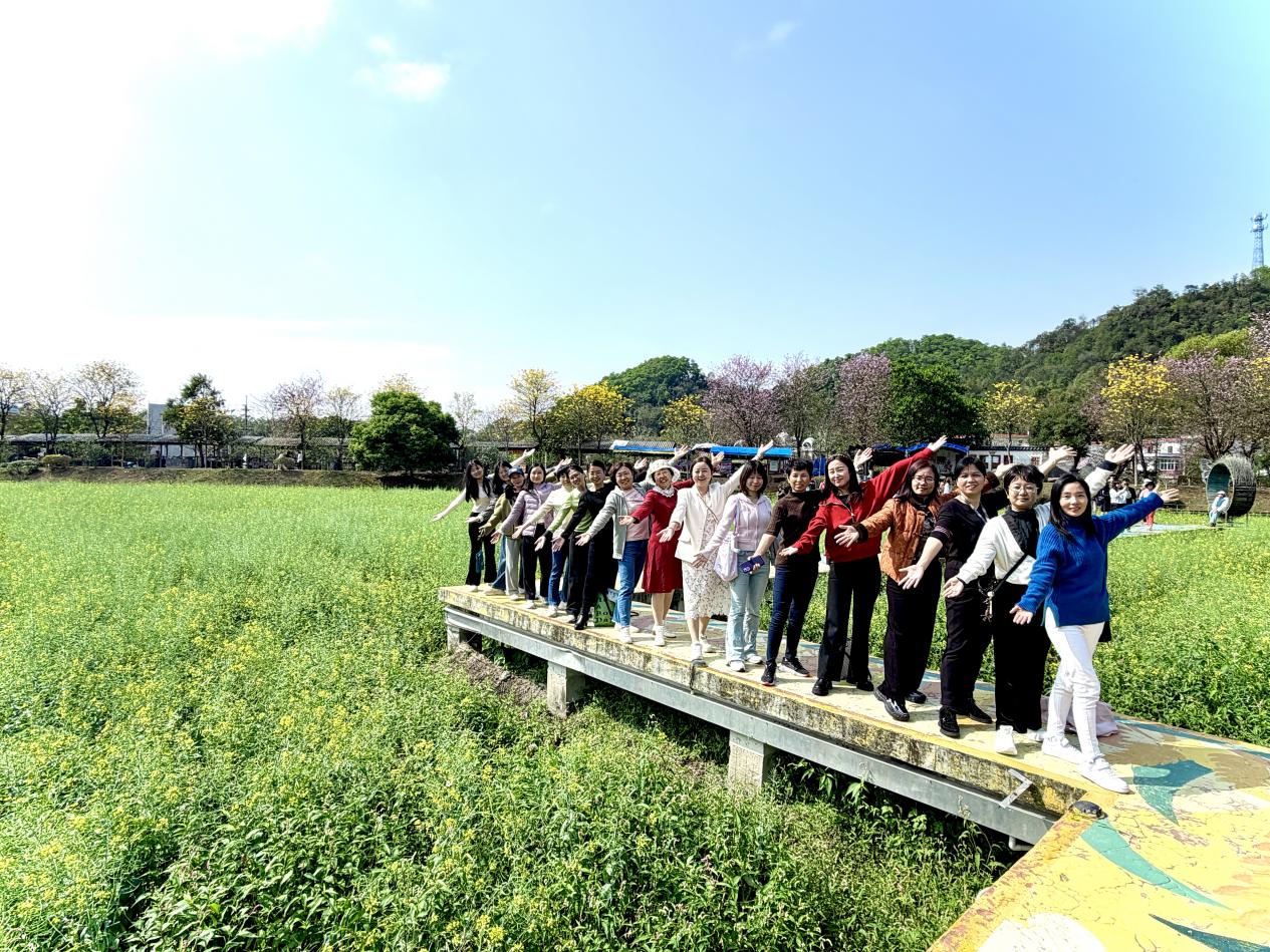 当日下午,女教师们怀着愉悦的心情抵达红山村。作为花都区首个“全国文明村”、被誉为“广州市最美山村”的红山村,处处春景与错落农房、蜿蜒步道、清澈溪水相映成趣,为此次踏青活动增添了浓郁的节日气息,也为女教师们舒缓身心提供了绝佳景致。