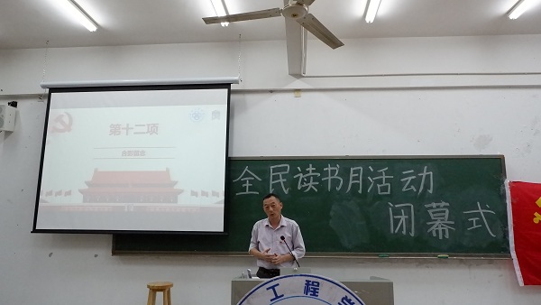 大会伊始,由吉慧雯作读书月闭幕开场发言,分享她对读书的看法。在最后的寄语中,对党务中心未来的发展寄予厚望。吴先键做此次活动的总结发言,视频回顾往期精彩瞬间,也做了此次活动的反思总结,需要想着更好的方向发展,以及对以后举行活动的美好展望。