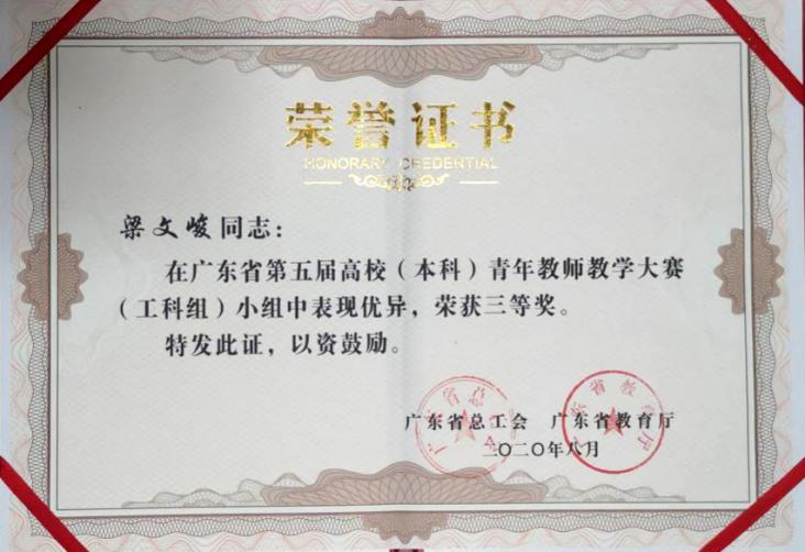 我校机械工程学院梁文峻老师在本次比赛中(工科组)获得三等奖。