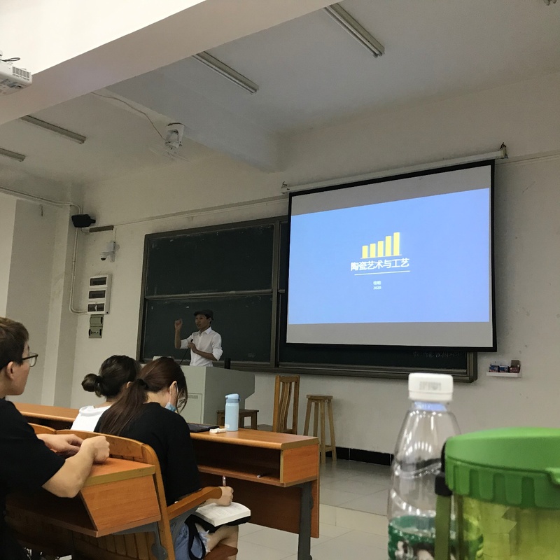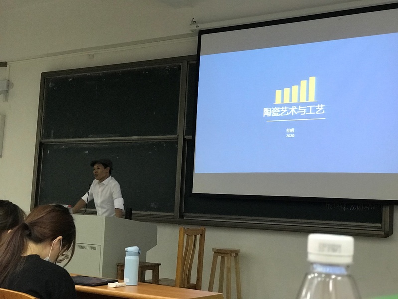 同时,他也在屏幕上向大家一一展示着他欣赏的陶瓷工艺产品。据说这些陶瓷工艺产品都是他在求学和旅游的途中所发现和留念的。桂明老师以诙谐幽默的方式,在讲授陶瓷文化的同时,也与在场的老师和同学们建立起轻松的气氛,让整场讲座轻松有趣。