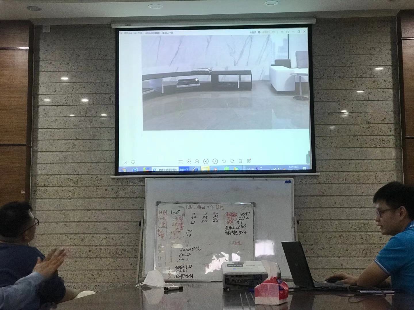 工业设计协会成员在办公室与企业代表详谈“大理石花纹”项目内容,从中了解并确定甲方需求,确定项目成员要做的具体工作。随后全体成员观看大理石花纹制作生产过程并在会议室观看效果产品图。学生们在此次活动中了解了大理石花纹的原材料、合成以及加工过程,若干种制作生产方式。协会成员纷纷表示在此次产品生产过程的实践中学到了平时在课上学习知识理论不一样的知识。梁文峻表示此项目可以作为大学生创新创业训练计划项目进行开展。