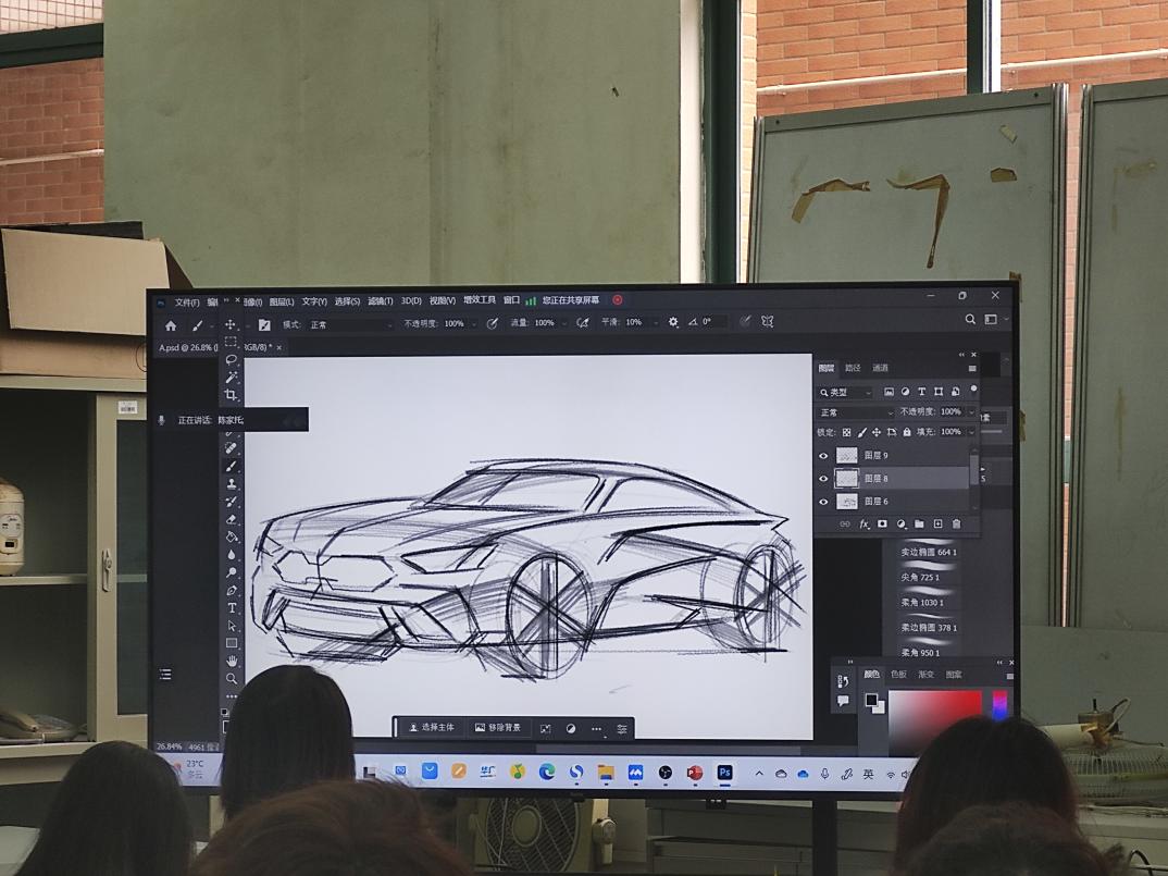 此外,李晓性还通过现场手绘示范,向学生们展示了如何利用数位板有效表达产品设计。在讲座结束后,学生们积极向李晓性提问,并表达了学习不同手绘方法与技巧以提高自己手绘表达能力的热切愿望。