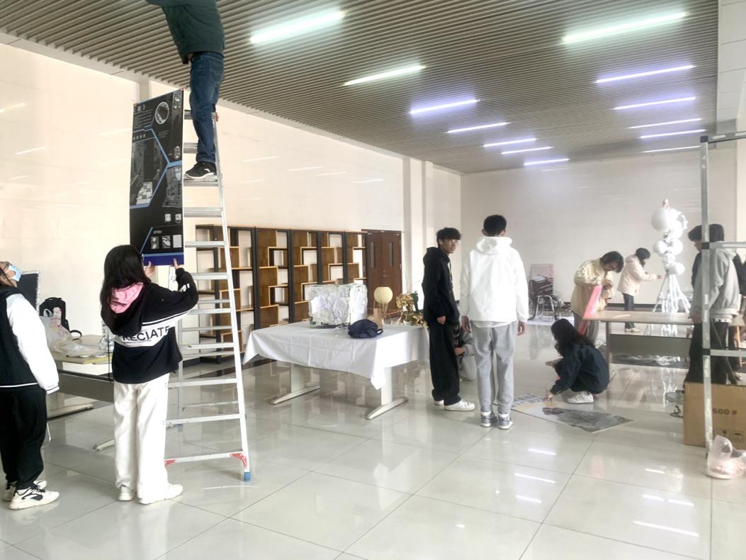 从周五早上8点,顶着广州天气巨变的寒风,微专业的同学们已经抬着展品到达图书馆开始布展,摆放布置展品、布置场地,悬挂展板等、足以看出大家对本次展览的认真与热情。