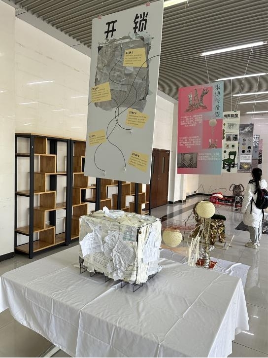 本网讯(记者 张晓宇)12月22日上午,我校机械工程学院与珠宝学院联合培养微专业班级35位学生的工业设计基础课程结课展——《材料感知的家居用品设计探索》。自12月22日至12月29日在本校图书馆一楼大厅展览。