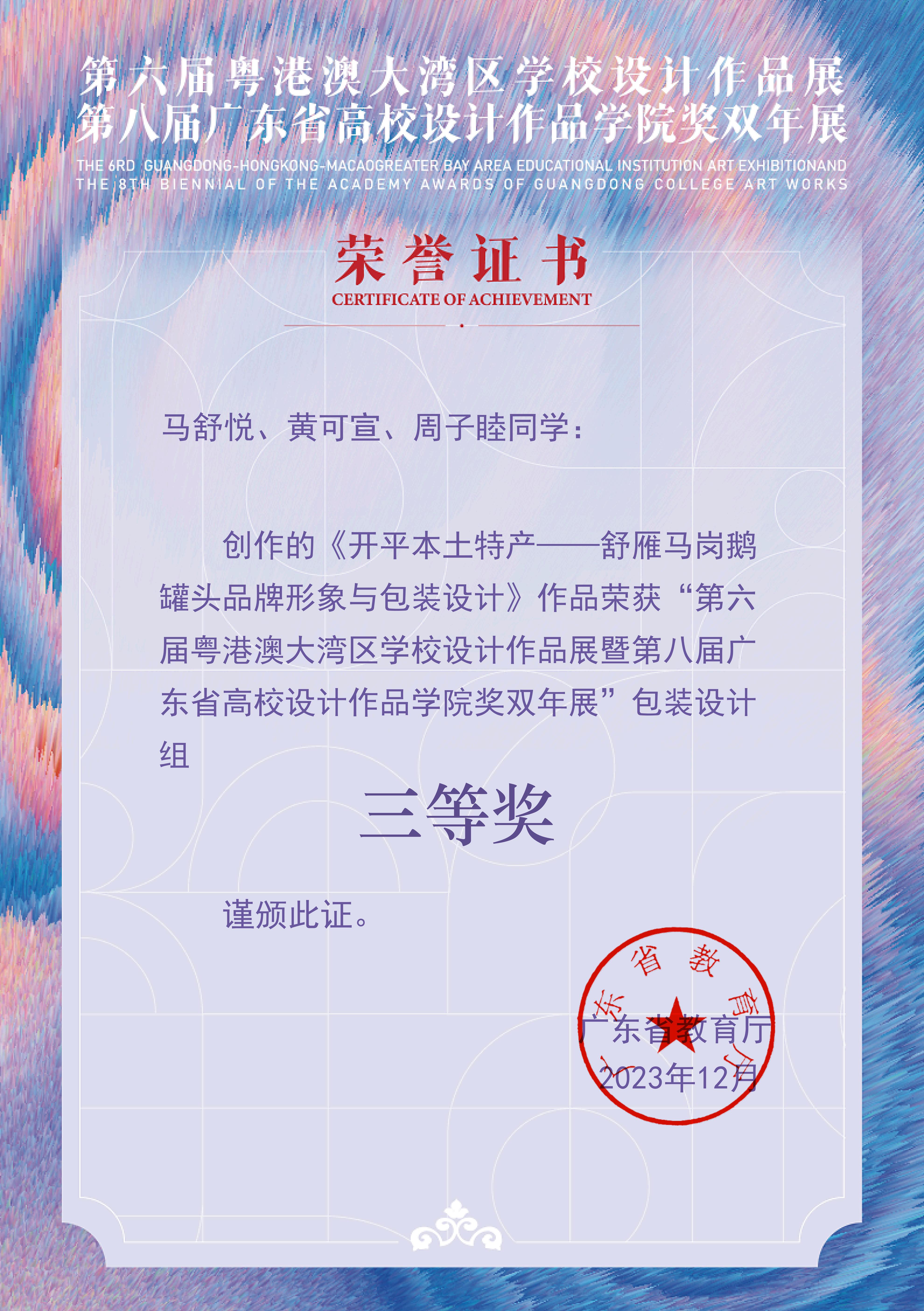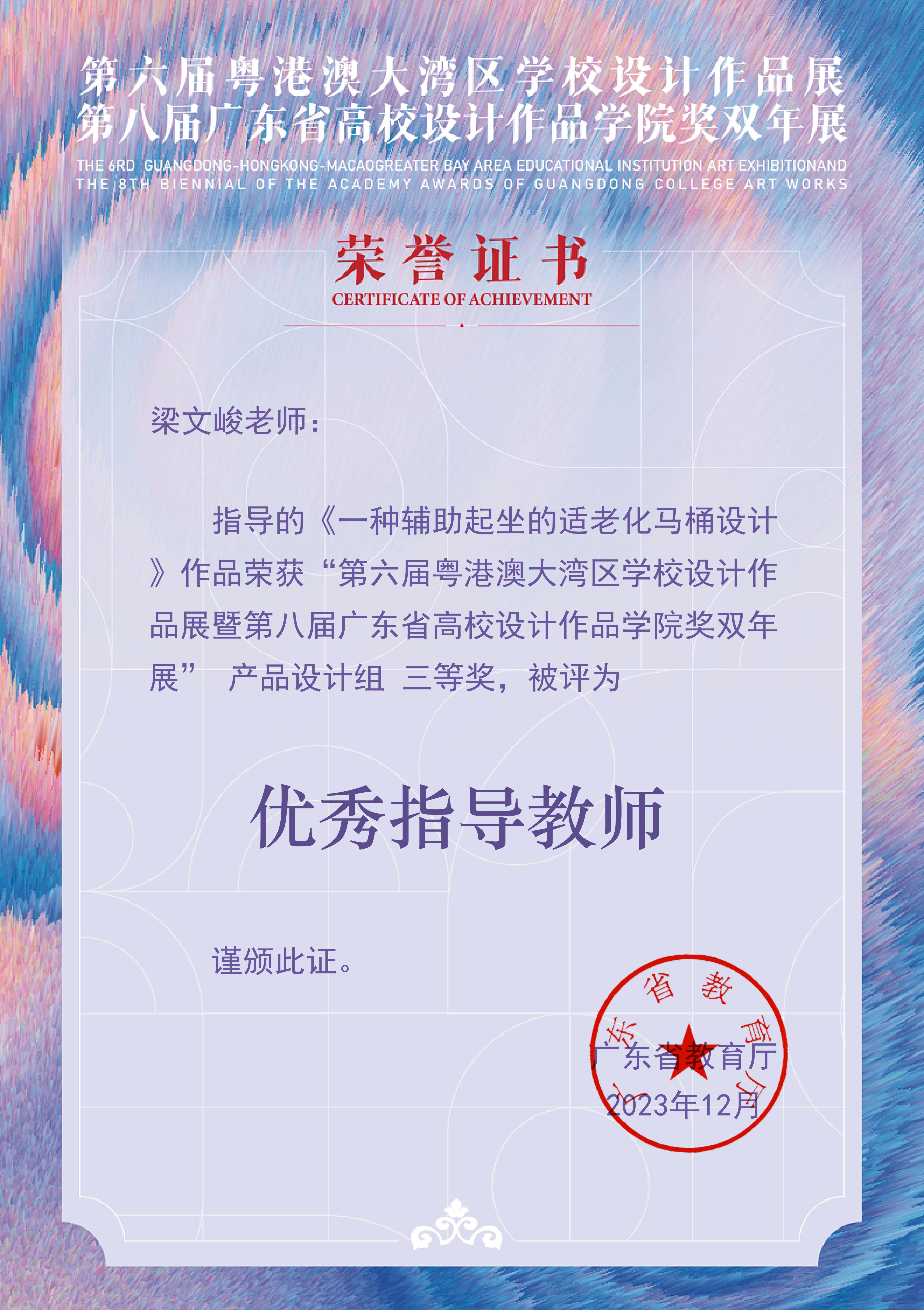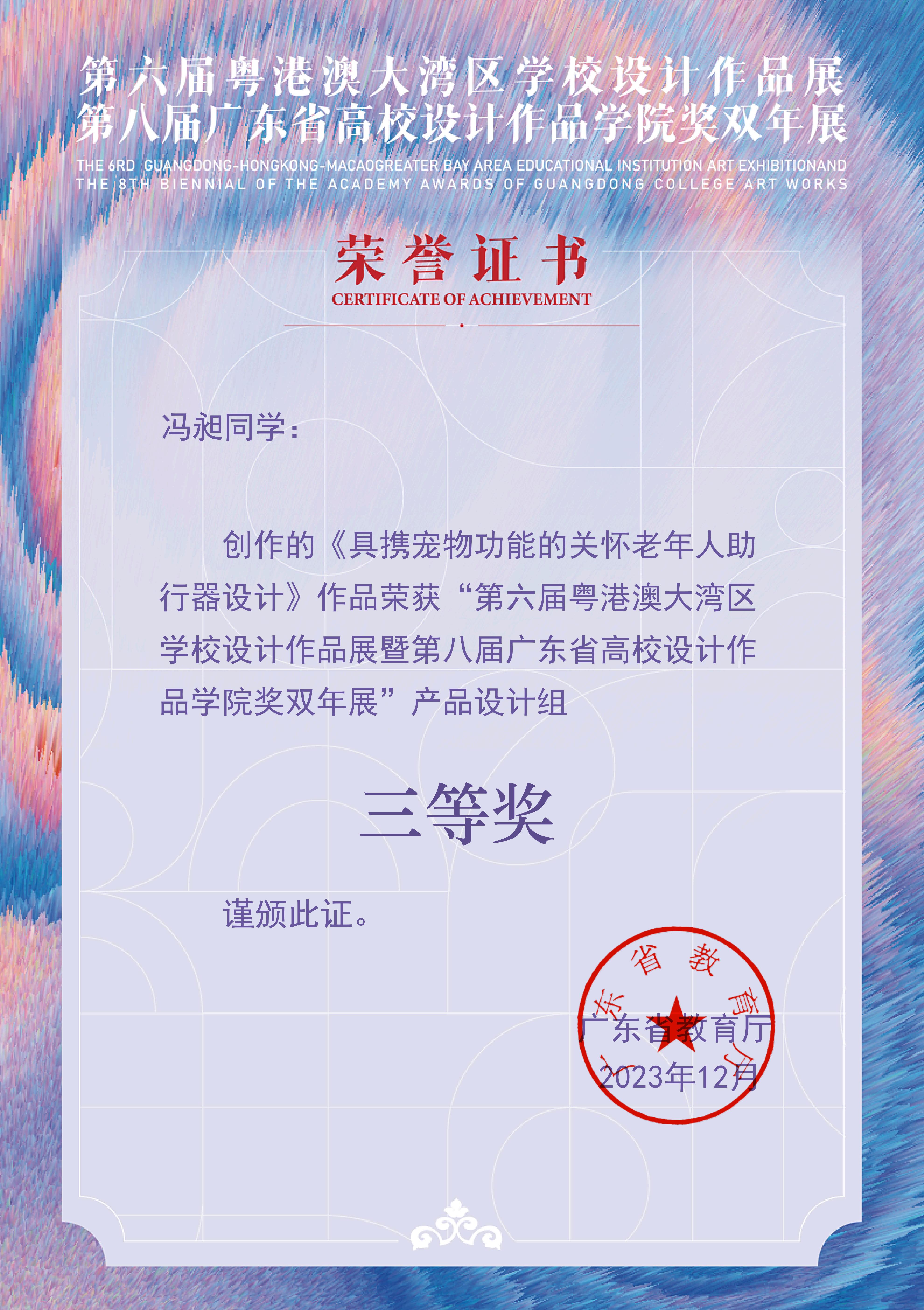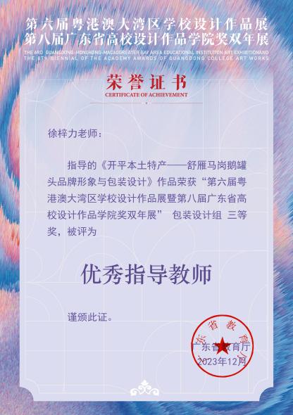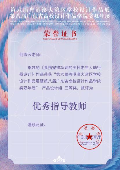 本网讯(记者 梁文峻)为深入贯彻落实《粤港澳大湾区发展规划纲要》和《关于全面加强和改进新时代学校美育工作的意见》精神,提升青年群体的文化认同感与社会责任感,加强粤港澳地区学校文化艺术共建,机械工程学院工业设计教研室组织工业设计专业学生参加了2023年广东省教育厅关于举办第六届粤港澳大湾区学校设计作品展暨第八届广东省高校设计作品学院奖双年展,取得了优异成绩,共获得了6项奖项,包括三等奖3项和优秀指导教师奖3项。