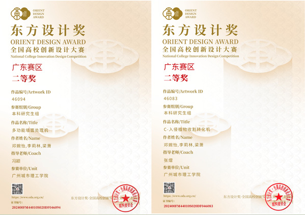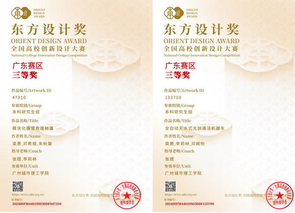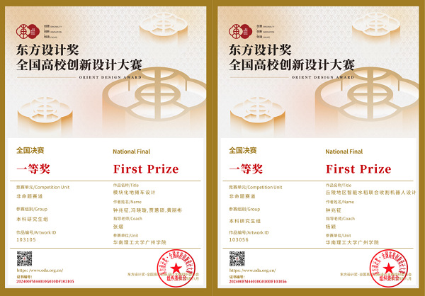 今年暑假期间,经过评审,由张熠和杨颖老师指导的2020级学生钟兆钲、冯晓璇、贾蕙硕、黄丽彬,凭借作品《模块化地摊车设计》和《丘陵地区智能水稻联合收割机器人设计》分别获得全国一等奖,以及由李斯、冯颖、张熠老师指导的2021级学生罗琳凯、李莉林、朱秋璇、邓希瑶、邓婉怡、梁萧,凭借作品《茶方-新中式茶饮VI设计》、《多功能墙面处理机》、《C-入侵植物收割转化机》、《模块化露营救援帐篷》、《全自动无水式光伏清洁机器车》分别获得获得广东省一等奖、二等奖、三等奖。获奖学生对此次获奖表示深感荣幸,认为这不仅是对他们努力和付出的认可,也是对他们专业领域追求卓越的激励。学生们特别感谢指导老师的悉心指导,以及大赛组织方提供的高质量平台,让他们得以展示才能。同时,他们对学校和学院的培养和支持表示感谢,感谢学校和学院为他们的学术和个人成长提供了坚实的基础。
