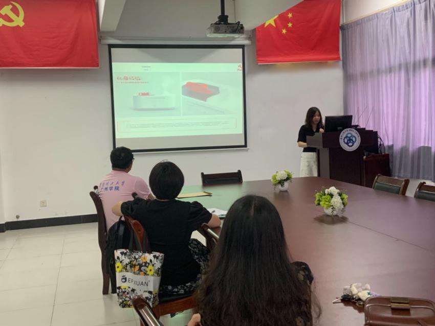 随后,党支部副书记薛青讲述了在广州雕塑公园里那著名的雕塑作品《艰苦岁月》,作者的创作心路勾起了老师们对吹笛子老红军和小红军那段革命历史回忆。冯颖老师用18级学生的产品设计获奖作品《小小侦查员》,讲述了“侦察英雄”郭滴海在1930年冬天主动担任引诱敌军的任务,成功帮助红军歼灭白军的革命历史故事。张熠老师通过油画作品《中共三大》讲述了中共三大的会议内容和召开意义,以图片介绍的方式带领老师们浏览了经过修复后的中共三大旧址。