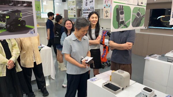 展览现场,嘉宾们用手中的贴纸选出他们心目中2025年度优秀毕业设计作品。此次展览,不仅展现了工业设计专业的教学成果,致敬了建校里程碑,而且以创新设计为笔,续写了湾区智造新篇章。
