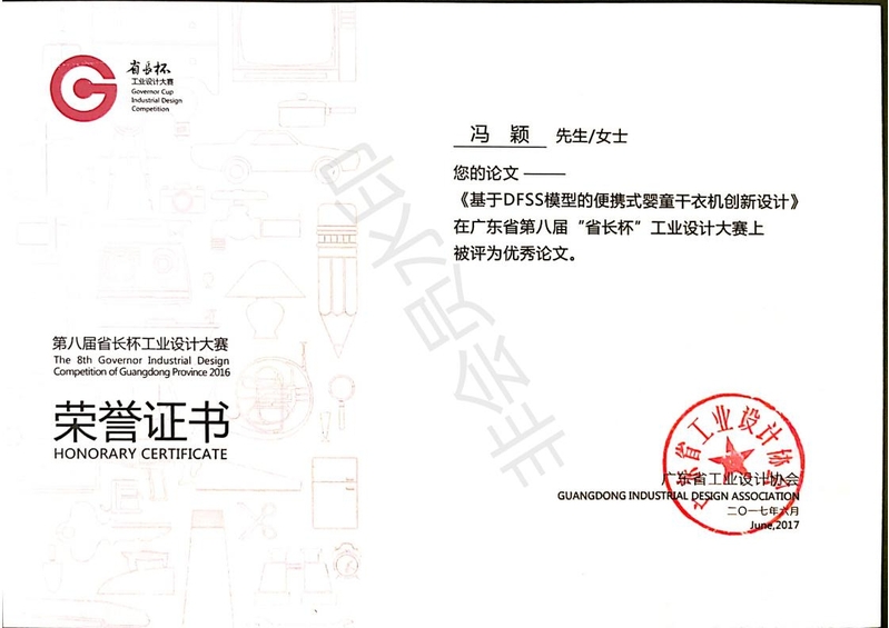 冯颖副教授论文获广东省第八届“省长杯”工业设计大赛优秀论文