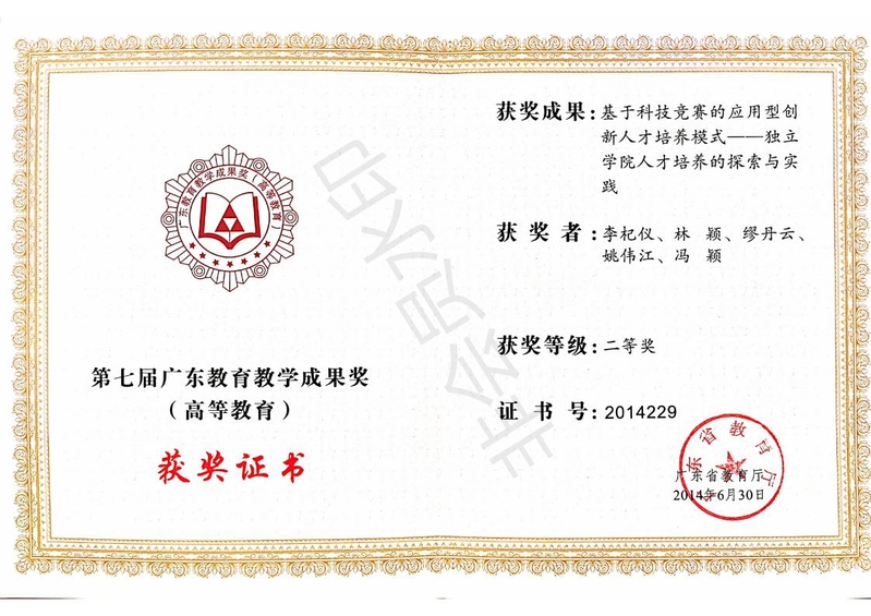 冯颖副教授获第七届广东教育教学成果奖二等奖