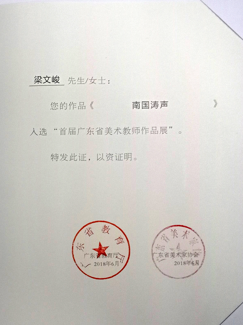 梁文峻副教授作品入选“首届广东省美术教师作品展”