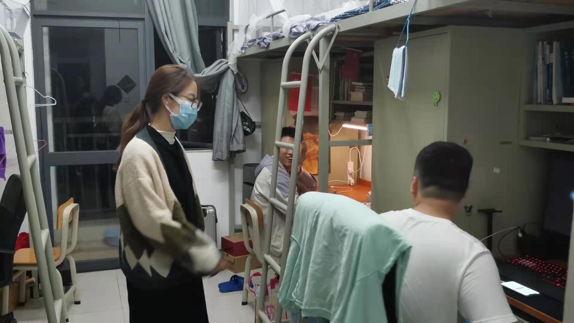 老师们还亲切地询问学生返校途中的情况、宿舍物品是否能继续使用,鼓励学生有困难及时向老师、辅导员反映,并表示领导和老师会竭力帮助同学们解决问题。还不忘提醒学生们关于用电等安全事项。同时也提醒同学们在疫情还未结束前要做好个人防护,宿舍勤打扫、勤通风。