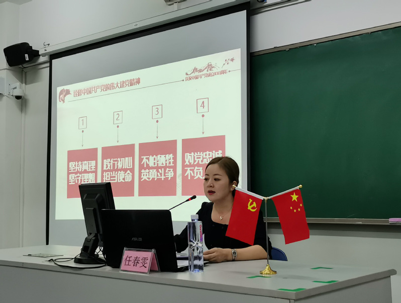 任春雯回顾了党的百年光辉历程,介绍了为实现中华民族伟大复兴,中国共产党团结带领中国人民创造了“四个伟大成就”:新民主主义革命的伟大成就、社会主义革命和建设的伟大成就、改革开放和社会主义现代化建设的伟大成就、新时代中国特色社会主义的伟大成就。她重点讲述了中国共产党的伟大建党精神,要求全体党员做到坚持真理、坚守理想,践行初心、担当使命,不怕牺牲、英勇斗争,对党忠诚、不负人民,提出要通过“九个必须”和五个“庄严宣告”,深刻领悟中国共产党的百年历史经验,从科学视角来学习党和国家事业发展的领导核心、价值追求、理论指导、战略支撑、外部环境、力量来源等一系列重大问题。