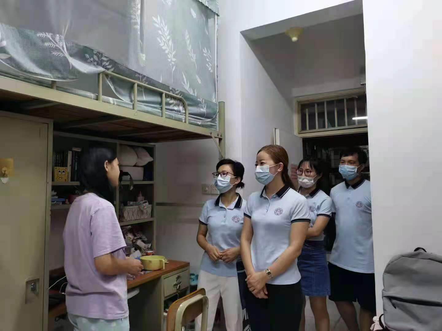 走访过程中,在书记任春雯的带领下,老师们深入到寝室,细心地访问每位寝室成员的生活状况和视察各寝室的环境状况,及时发现并解决问题。提醒同学们谨防网络诈骗;合理规划大学生活,确立发展目标。对学生的返校情况进行了解,并关心学生的学习、生活等相关情况,督促学生做好卫生防疫工作,提醒学生警惕电信诈骗和做好开学第一课的准备。并就疫情期间宿舍的环境卫生及安全问题做出强调。老师与同学们亲密交谈,宿舍走访氛围温暖和谐。访问了他们在这里住的习不习惯、能不能适应这里的生活、外面是否会很吵等。老师们谦和的态度和以身作则的优良工作作风,体现了我部关爱同学、服务同学的良好意识。