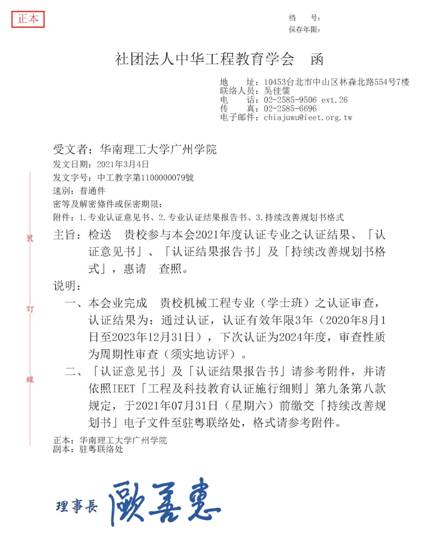 本网讯(记者 舒长河 潘健怡)根据中华工程教育学会(IEET)2021年3月4日发布公函,我校机械工程专业顺利通过IEET认证期中审查。